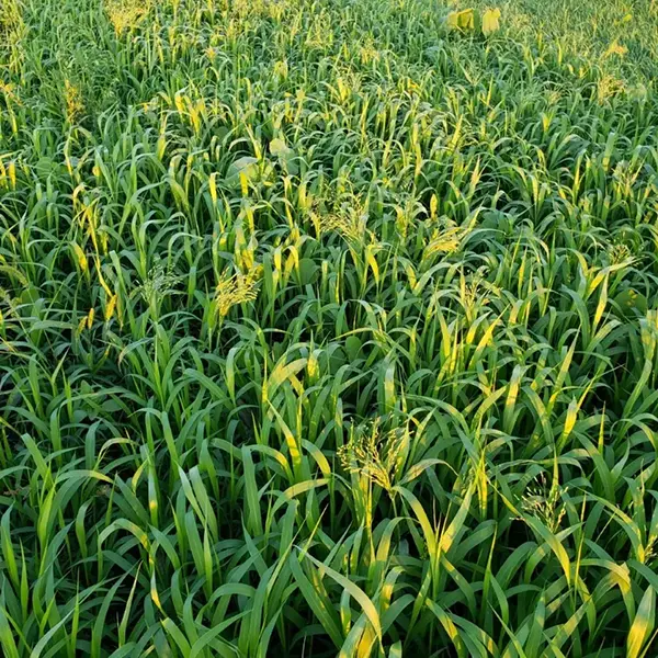Foxtail millet is a rapid growing annual cover crop but matures early, which limits its yield potential to less than pearl millet or sorghum-sudangrass. The forage cures rapidly after swathing due to its naturally fine stems, making it very easy to put up as dry hay. It has poor regrowth making it best suited as a one cut, short term hay crop, but its strong stalk and close broad leaves allow this variety to resist lodging and windblow. Avoid giving to horses, since it can cause joint issues for them, however for most livestock it is not an issue.